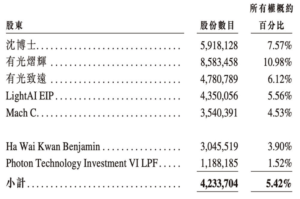 截至2026年3月23日,沈亦晨博士控制曦智科技34.76%的投票权。沈亦晨、LightAI EIP、Mach C、有光致远、有光烁然及有光熠辉,连同Deep Harbor Limited、Foong Jun Zhe、有光煜宁及张弘,是曦智科技的单一最大股东。
